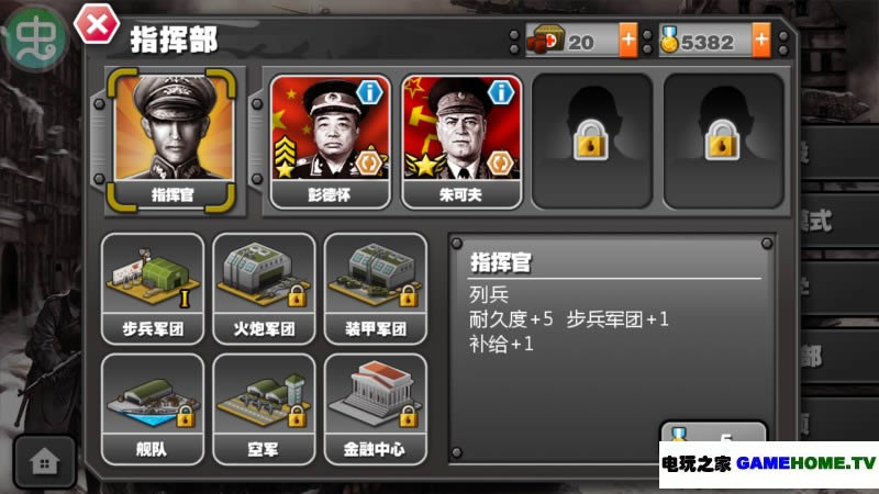 *你需要在作战中不断的积累功勋,从一个士兵晋升为元帅。 注意指挥部中军事设施的升级,在战争中它们会对你提供必要的援助。