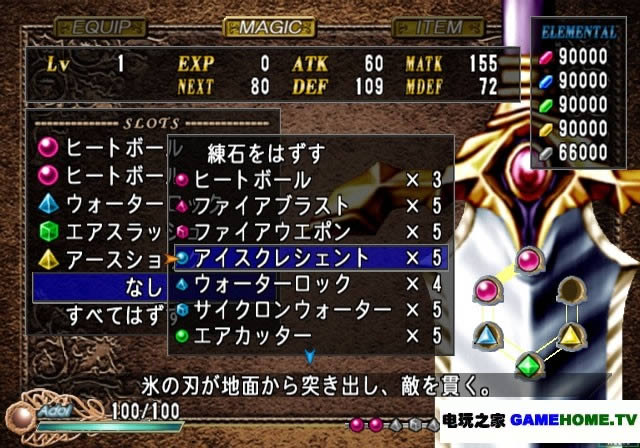 主角亚特鲁使用的剑是无属性的,使用炼金魔法会有「火」、「水」、「风」、「土」4种属性。把炼金石镶嵌在剑上就能发挥该炼金石所拥有属性的攻击。当然敌人也可以用这洋的方法使用属性攻击。依敌人的属性不同,玩家所使用的属性攻击造成的伤害也不相同。