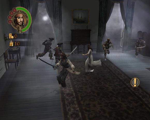 海盗、探宝、比剑等游戏元素在本作中同样表现得淋漓尽致。杰克·斯派洛(Jack Sparrow)是个狂妄自大但魅力十足的人物,玩家将伴随着这个角色体验到相当丰富的游戏感受。 众多的关卡,场景多样,比如著火的建筑、废船和山洞等等。 多数时侯,玩家将挥舞长剑与敌展开英勇斗争。 同时,你还要躲避海军对你的追捕。随着游戏的深入,你还将学到不少战斗技能。