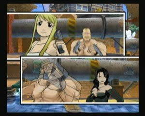故事模式的关底BOSS都是大总统,他的战斗实力和他本人的思想一样深不可测。说实话,动画中让人最不爽的角色恐怕就是他了,现在终於得到机会能好好教训他一翻。他的双刀威力惊人,外加皮厚肉粗,就算我们是2V1也无法轻取之,不愧是。场景裏除了供炼化的道具外,还有不少 “陷阱”,比如突然驶来的火车,间歇性喷火的臺子,还有种隐性的陷阱,像STAGE5裏浮在水上的木板,平时畅通无阻,可是一旦四人全站在上面臺子就会沉下去,而穆斯唐站在水裏就放不出火来这点路人皆知……出色的创意让人拍手叫绝。满足一定条件以后(比如不续关完成故事模式),玩家能得到隐藏角色,包括强欲(也就是格裏德啦),爱德和阿鲁的师傅,大总统等,此后在对战和育成模式裏就能选择他们。