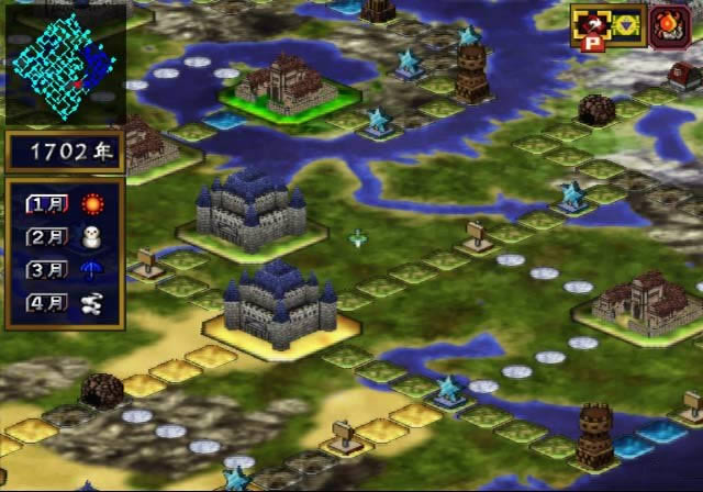 游戏流程主要由“内政”、“移动”、和“战斗”三大部分构成。“内政 ”主要的目标就是增加据点的收入,扩充军费,增强我军的作战能力以及综合国力。各地存在的“据点”分为两个衡量水准,城墙和商业水平。