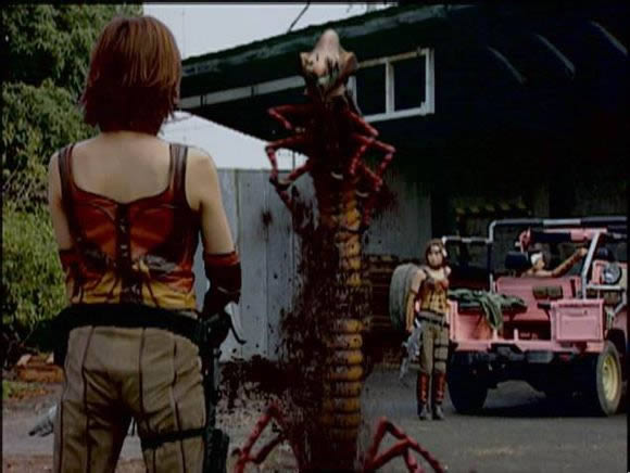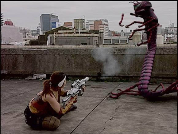 TAITO最新PS2冒险射击游戏「战斗女王」(Combat Queen),是一款结合真人拍摄电影与3D射击要素的异色冒险游戏,游戏预计8月1日推出,售价6800日币。这款游戏最大卖点,就是参予演出的五位女星都是日本当红的美少女偶像,如周防玲子、大谷美平、小池荣子、曲山理惠、三津谷叶子...等,故事设定在近未来的地球,因为神秘生物入侵而使地球面临危机,五位美少女肩负起保卫地球的重任,与邪恶组织展开战斗。游戏进行分为两大部分,由真人拍摄电影交代整个故事发展,并用3D射击方式与敌人战斗。而射击又分为3D多边型射击与电影结合3D多边型两种方式表现,制造出颇为异色的视觉质感。