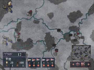 第二个层面是作战地区图,当两个军团在大地图上遇见以后就进入战略层面(即时制)。一开始是暂停状态,然后调配好军队后便可以开始了,军队会按照所指定的路线移动,此间可 以随时按暂停重新调配军队。如果与敌方军队遇见,就进入最后一个层面,战术层面(回合制),一开始可以看见双方的在地形上和其他方面的数值印象表,然后调 配军队,战斗成员分为4组,3组是直接战斗成员,1组是支援战斗成员,调配军队的时候可以切换前3组的前后顺序,都指定本回合的战术后便可以选择支援战斗 成员的战术方针了。战术层面是两个回合,两个回合结束后或者一方被全灭又会回到战略层面,这时如果对方没有被全灭有可能已经突破你的防线了,你要移动军队继续追击。