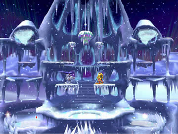 多人乱斗模式下,提供 1~4 人的大乱斗对战功能,玩家可与朋友一同在包括丛林、火山、雪地、瀑布、工厂、钻油平台、西部小镇 等 10 种各具特色的舞台上,使用自己喜爱的数码宝贝,施展连续技与必杀技展开精彩的大乱斗对战。