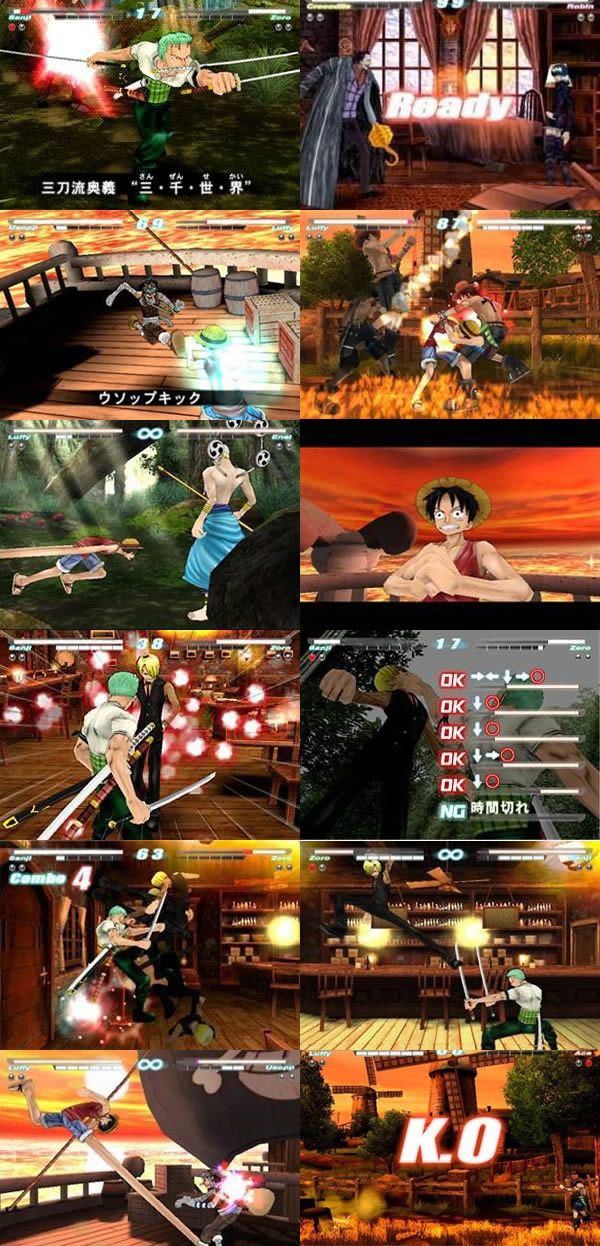 改编自漫画「航海王」的游戏,又一块降临在 PS2 主机之上啦!本作不但有钗h原作迷熟悉的场地会登场,就连角色的阵容也相当丰富,完全与原作相同的个性、动作、能力特色都完整呈现在玩家面前,以让玩家享受到如同原作一般痛快、爽快的格斗战喔!