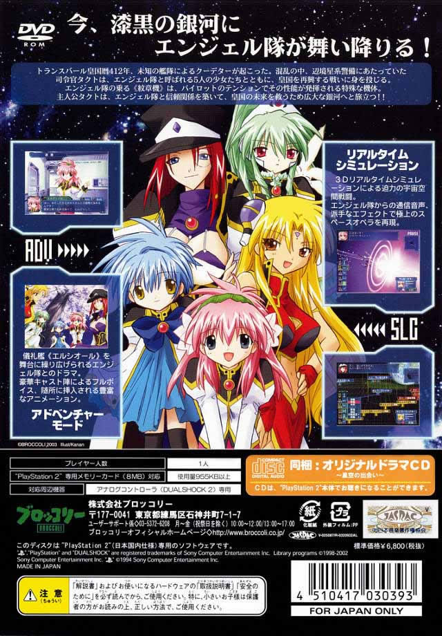 而在游戏方面,则可分为冒险与战斗两部分。在冒险部分中,玩家可以跟天使小队的成员彼此互相聊天沟通,并藉由会话选项中的不同选择来提升队员的好感度与信赖度。其中好感度可以影响和角色之间的亲密关系,而信赖度则是会影响战斗有利与否。另外在战斗部分,玩家则必须在宇宙空间中进行激烈战斗。其中除了有3D表示的战舰、战机等的即时战斗外,由于在战斗中角色还会以声音报告战况,因此玩家可以很清楚地瞭解战局中目标的击破、机体损伤、能源不足等各种状况,并依战况不同下达新的指令。