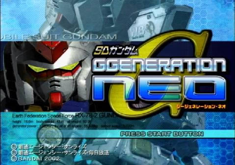 在BANDAI这次推出的PS2「SD刚弹GGENERAITON-NEO」中,游戏以「机动战士刚弹」系列为基础,收录包含「机动战士刚弹 SEED」、「机动战士刚弹」、「第08MS小队」、「0080 口袋中的战争」、「0083 星尘的回忆」、「Z刚弹」、「刚弹ZZ」、「逆袭的夏亚」、「刚弹F91」、「机动武斗传G刚弹」、「新机动战记刚弹W」、「机动新世纪刚弹X」以及「倒 A刚弹」等14部作品,而且更棒的是当玩家满足特定条件时,还可以让游戏原创角色加入我方,让游戏更添乐趣。