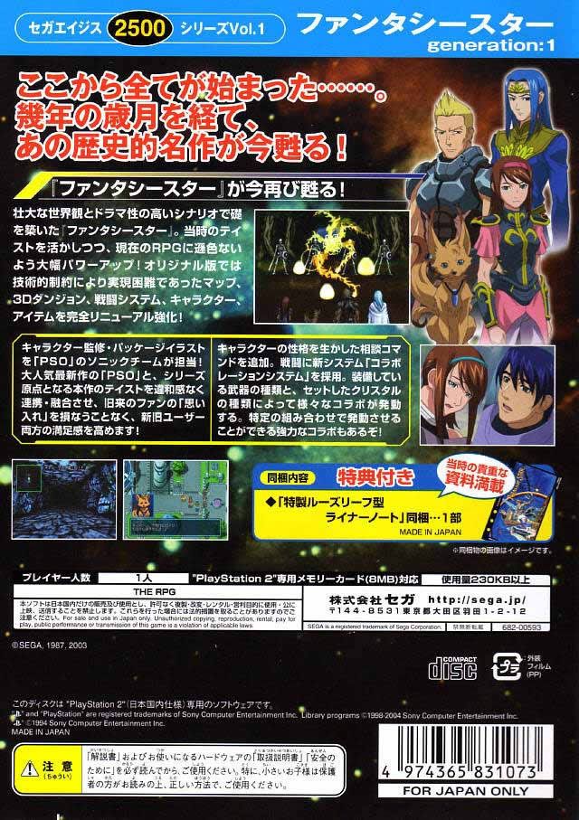 日文名称:SEGA AGES 2500 シリーズ Vol.1 PHANTASY STAR generation:1