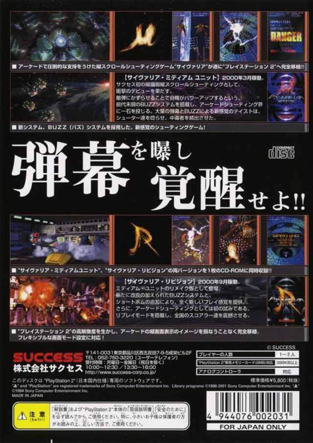 这款PS2版不仅是独占版本,更是一个是完全版,其中包括了街机版原作《Psyvariar: Medium Unit》和2000年推出的加强版《Psyvariar Revision》,这也是经历了整个2001年的射击游戏真空期之后,PS2上首次出现的街机移植STG。