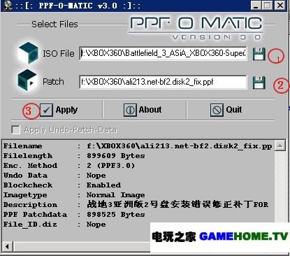 解压缩到你的光盘版下载目录 执行ppf-o-matic3.exe,按下图设置