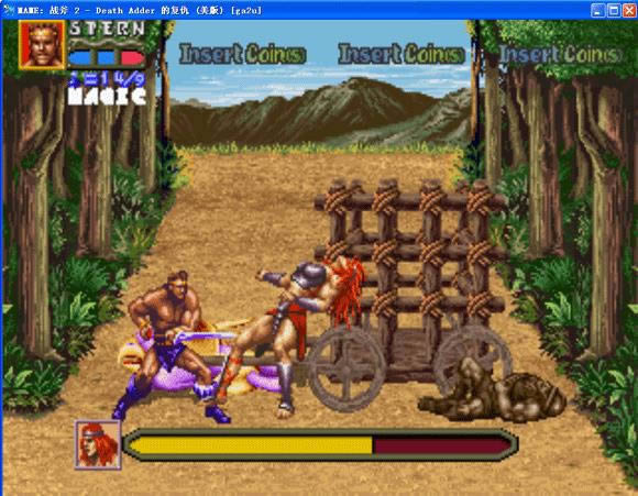 双击mamepgui.exe--拥有游戏--F5刷新--双击“战斧2 - Death Adder”--同时按O,K键2次 进入游戏