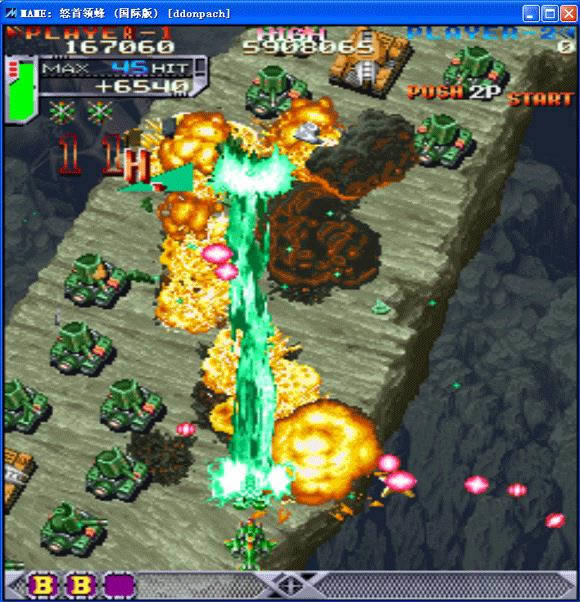 街机上好玩的一款飞机游戏,有三款机型选择,有三条命,三个宝。不停的按子弹是散弹,按住不动的话是激光。已经集成电脑模拟器。