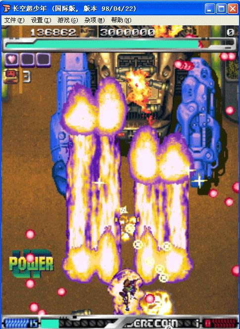 竖版空战游戏,共3款人物选择,3条命/3个宝。H键子弹,J键齐射,K键放宝。游戏有点难度。