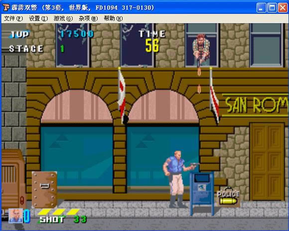 双击FBAs.exe--文件--载入游戏--F5刷新--双击“霹雳双警(世界版)”进入游戏