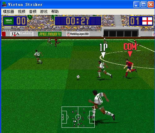双击EMULATOR.EXE--模拟器--载入rom--双击Virtua Striker进入游戏