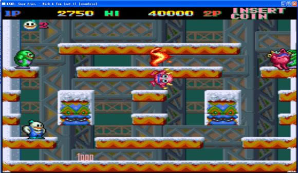 经典的休闲游戏,1990年出品。按J键放雪把怪物冻成雪球,推一下就把所有怪物打倒啦。已经集成模拟器,下载到电脑后可以直接玩了。