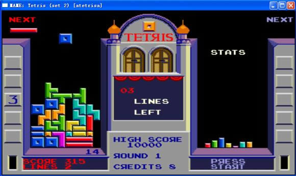 双击mame32k.exe--A可用游戏--F5刷新2次--Tetris(set 2)