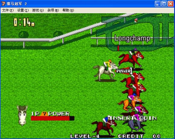 一款赛马街机游戏,H键确定,J键鞭子。取好名字,选好马就可以开始比赛了。要取得第一名才能进入下一轮。