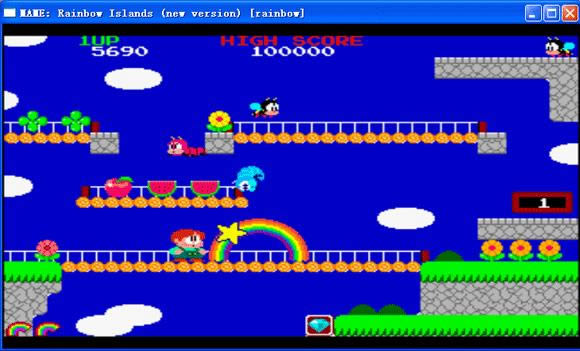 双击mame32k.exe--A可用游戏--F5刷新2次--Rainbow lslands