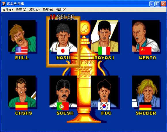 很好玩的一款乒乓球游戏,HJ键控制,共有八个国家的队员选择。