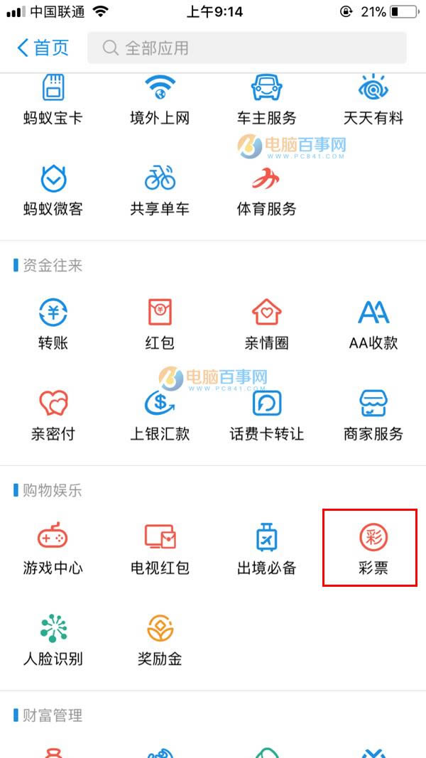 1、进入所有应用找到彩票应用图标,点击进入,如图所示。