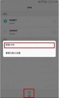 2、进入后--点击屏幕下方的“菜单键”----然后点击“新建APN”;