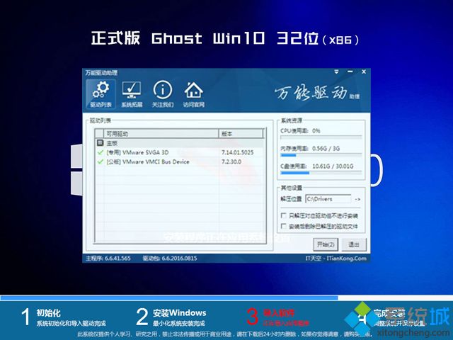 12、安装过程会运行驱动选择工具,此工具可智能判断所有的电脑硬件型号,最大限度地避免了因 驱动冲突而蓝屏的现象;